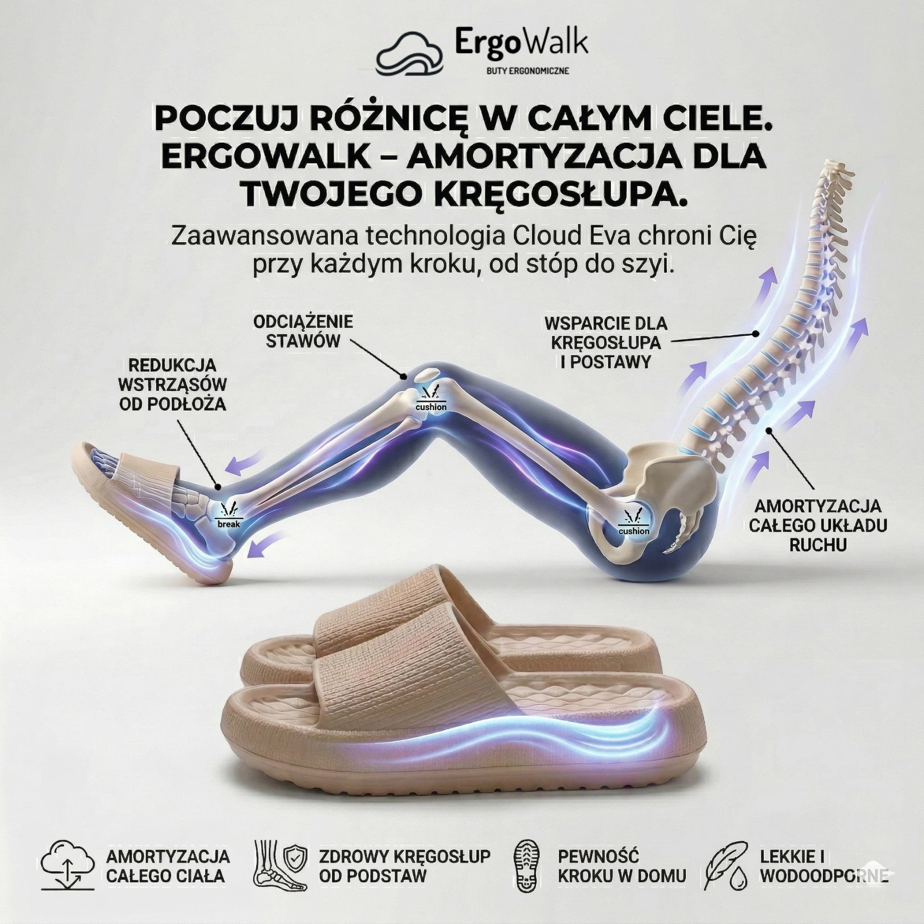 ERGOWALK to ortopedyczne kapcie nowej generacji, stworzone z myślą o Twoim kręgosłupie.