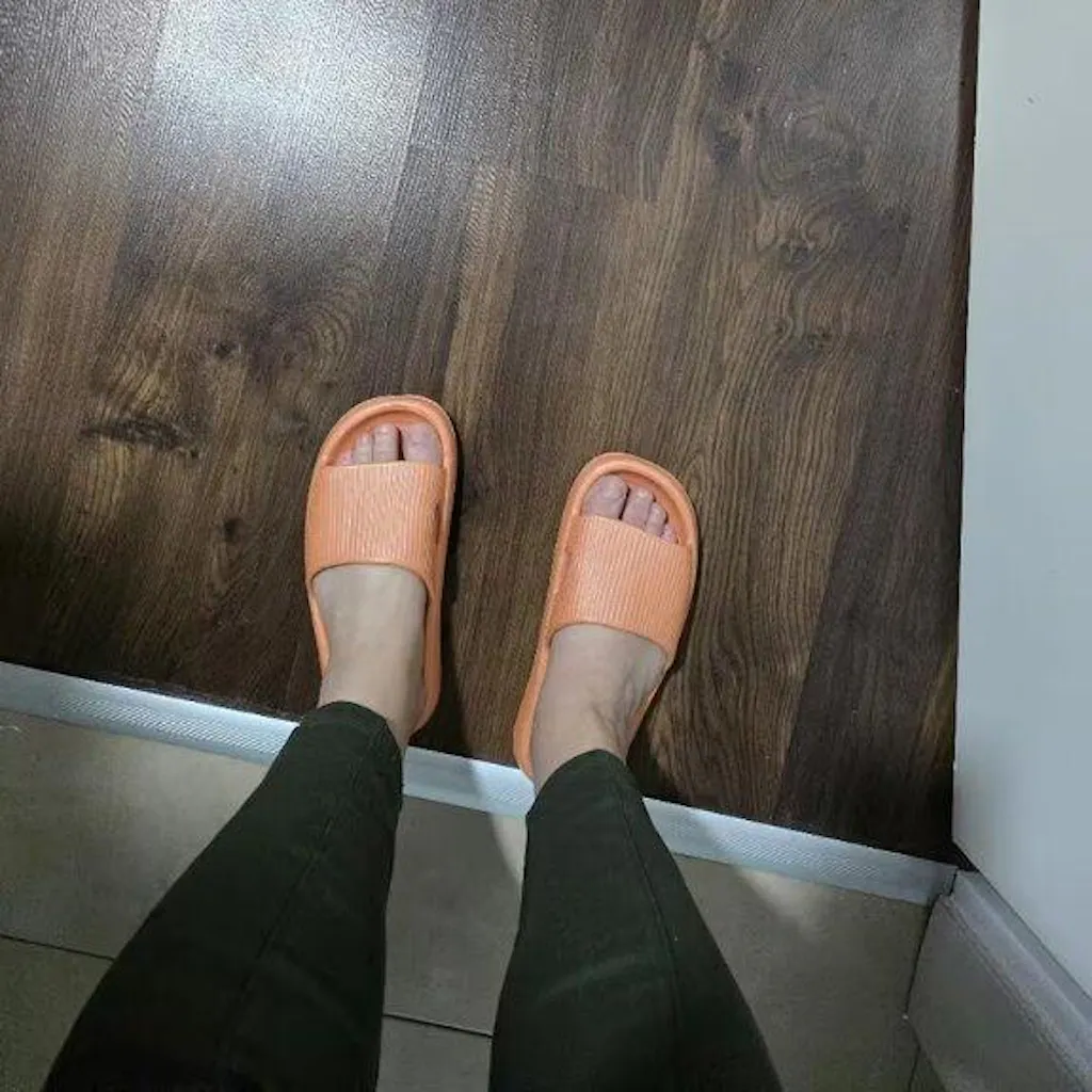 4-centymetrowa podeszwa pochłania 90% wstrząsów. Zdejmij ciężar z pleców i poczuj lekkość, której nie dadzą Ci żadne zwykłe kapcie.